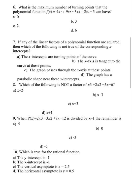 Must contain at least 4 different symbols. Exercise 22 Solutions 16 Questions 6 Long Answer Questions 10 Short Answer Questions Exercise 23 Solutions 10 Questions 3 Long Answer Questions 7 Short Answer Questions Exercise 24 Solutions 10 Questions 4 Long Answer Questions 6. 34 Graphs of Polynomial Functions.