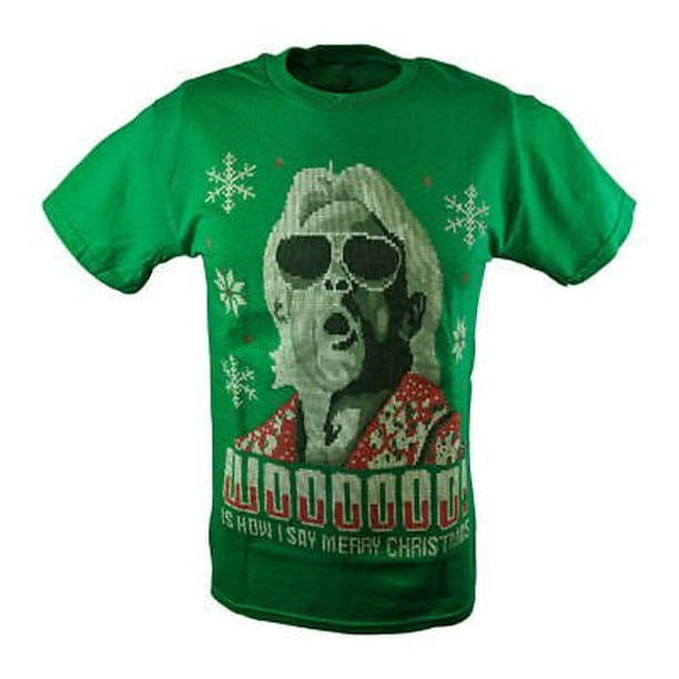 Ric Flair Wooooo Christmas Wwe Mens Ugly Green T Shirt M Frflairwoougly M Walmart Com