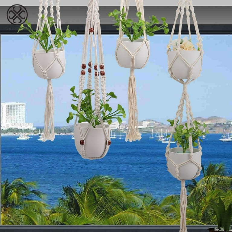 Luxtrada Indoor Outdoor Hanging Plant Holder Hanging Planter Stand Flower Pots Plant Hanger Cotton Yarn With Bead Twist Knit Walmart Com